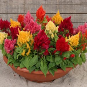 This annual is a compact well branched plant that makes a stunning display in containers. They produce large flowers with feathery plumes in a great range of colours. Height 30cm