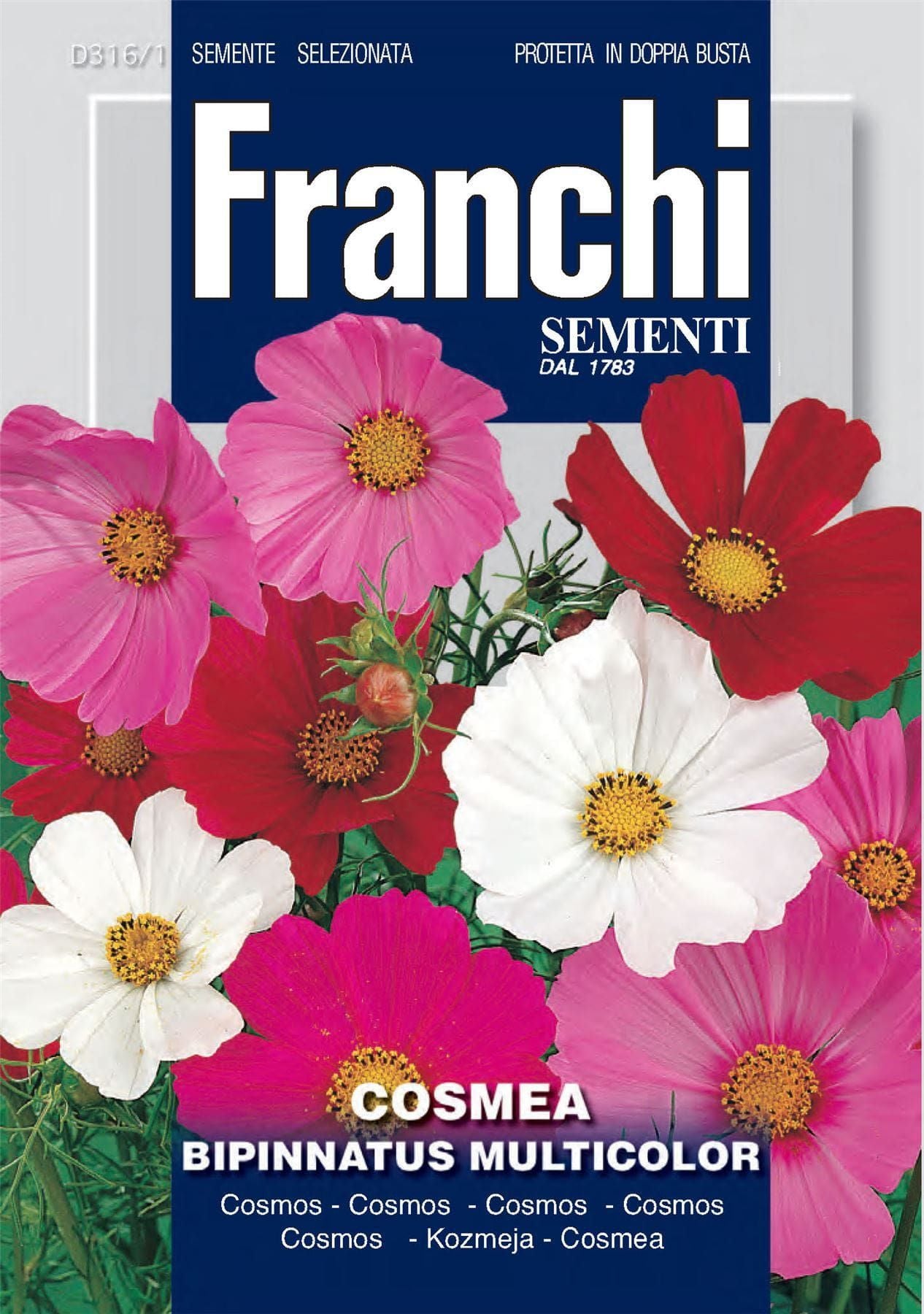 COSMEA GRANDIFLORA MULTICOLOR- perennial plant, 100cm tall, easy to cultivate.It produces many colourful flowers from flower head till the brillant colours. Blossoms till autumn. Indicated for the borders, to the vase. It needs to be supported.