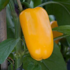 This sweet bell pepper produces small yellow fruits (6 x 3.5cm) that are ideal for kids’ lunch boxes. The plants grow to a height of 40-45cm, making them suitable for 12-17cm pot production.